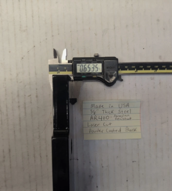 - 5/8" thick AR400 abrasion resistant hardened steel