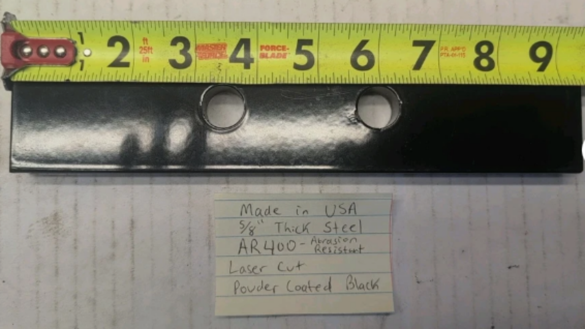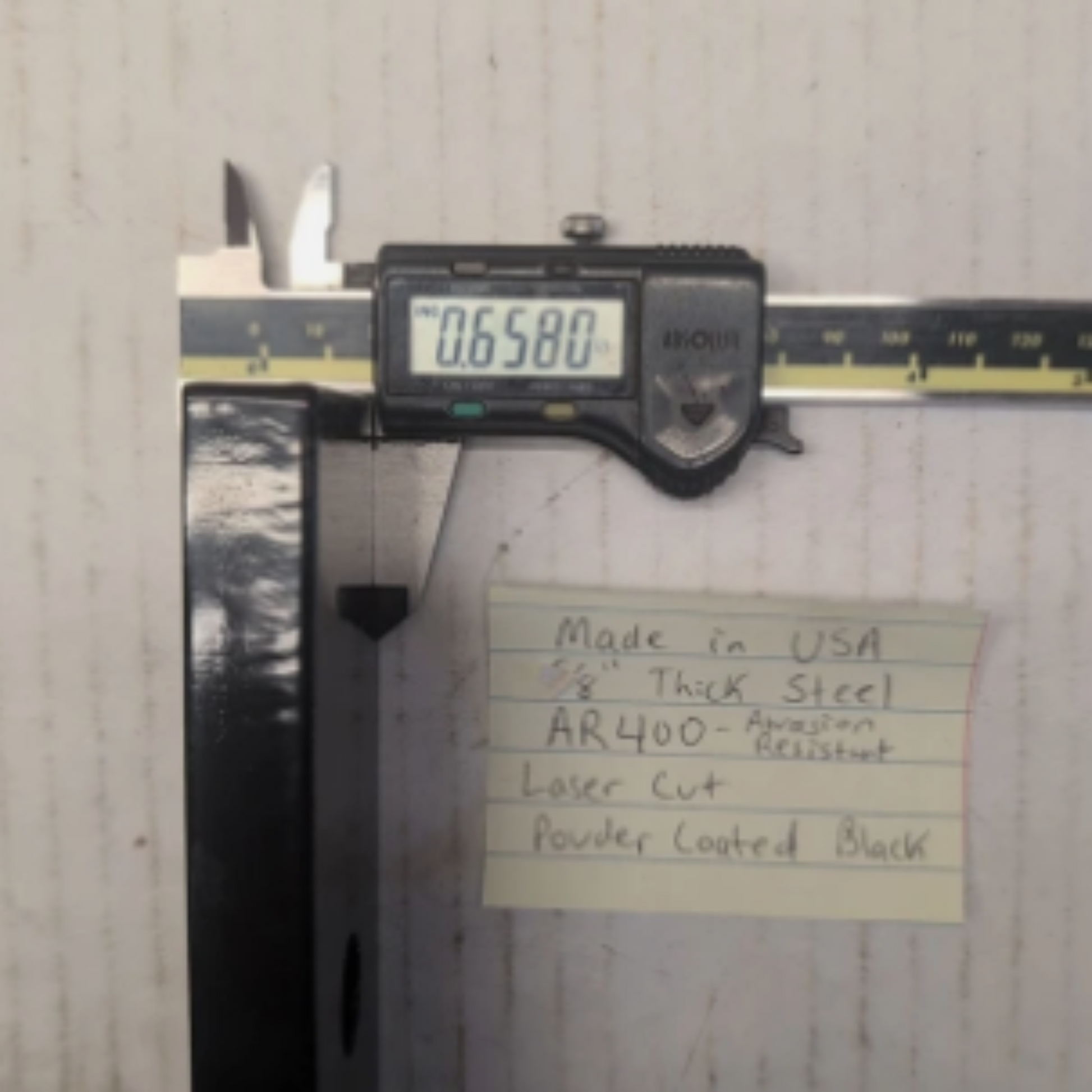 - 5/8" thick AR400 abrasion resistant hardened steel